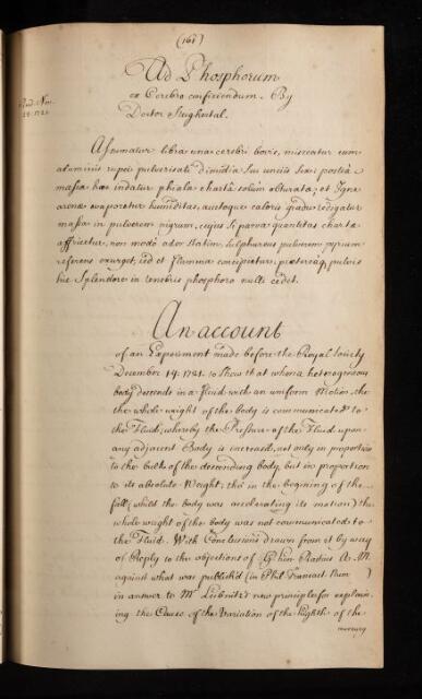 Account of an experiment to show descent of bodies with uniform motion, 1721, RBO/11/40, The Royal Society Archives, London, https://makingscience.royalsociety.org/items/rbo_11_40/account-of-an-experiment-to-show-descent-of-bodies-with-uniform-motion, accessed on 14 December 2025