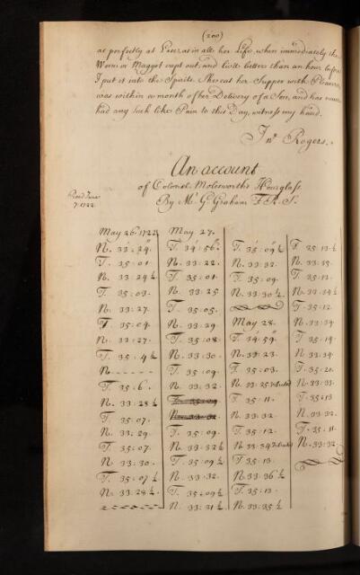 Observations, 'Account of Coll [Colonel] Molesworth's hourglass' by [George] Graham