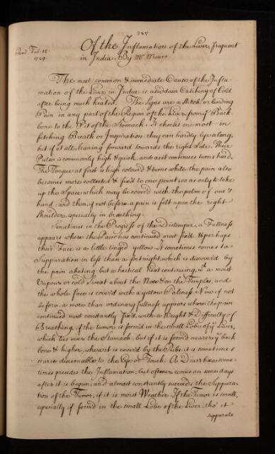 'Of the Inflamation of the Liver frequent in India' by Mr Monro