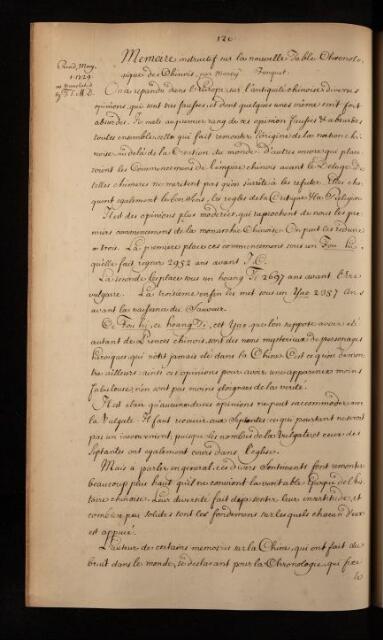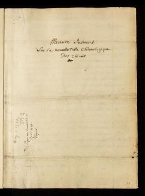 'Memoire instructif sur la nouvelle Table Chronologique des Chinoise' by Father Fouquet