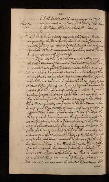 'An account of an uncommon Mola' communicated in a letter to William Rutty by W Oliver, 1729, RBO/14/76, The Royal Society Archives, London, https://makingscience.royalsociety.org/items/rbo_14_76/an-account-of-an-uncommon-mola-communicated-in-a-letter-to-william-rutty-by-w-oliver, accessed on 21 April 2026