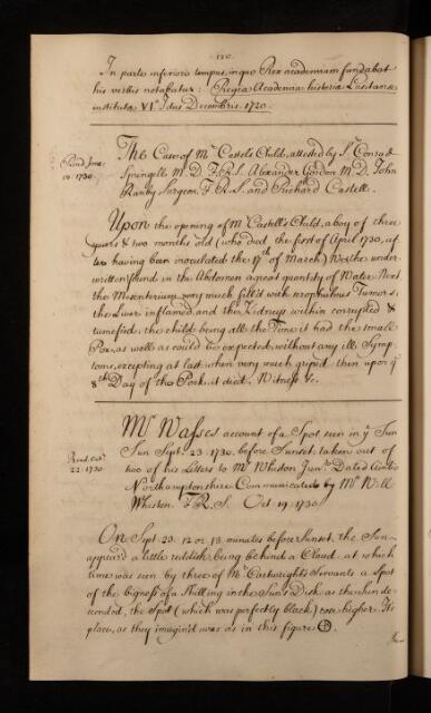 'The Case of M Castel's Child attested by Conrad Sprengell, Alexander Gordon, John Ranby and Richard Castell', 1730, RBO/15/9, The Royal Society Archives, London, https://makingscience.royalsociety.org/items/rbo_15_9/the-case-of-m-castels-child-attested-by-conrad-sprengell-alexander-gordon-john-ranby-and-richard-castell, accessed on 11 March 2026