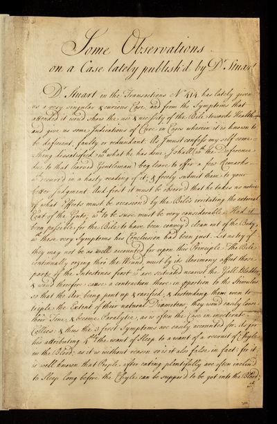 'Some observations on a Case lately published in Philosophical Transactions by Dr Stewart communicated to Dr Mortimer', 1731, RBO/17/3, The Royal Society Archives, London, https://makingscience.royalsociety.org/items/rbo_17_3/some-observations-on-a-case-lately-published-in-philosophical-transactions-by-dr-stewart-communicated-to-dr-mortimer, accessed on 15 January 2026