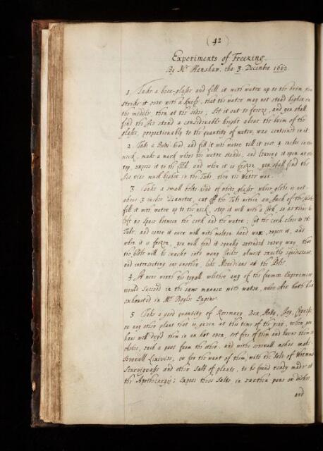 Thomas Henshaw, 'Experiments of Freezing' by Mr Henshaw, 3 December 1662, RBO/2i/8, The Royal Society Archives, London, https://makingscience.royalsociety.org/items/rbo_2i_8/experiments-of-freezing-by-mr-henshaw, accessed on 08 December 2025