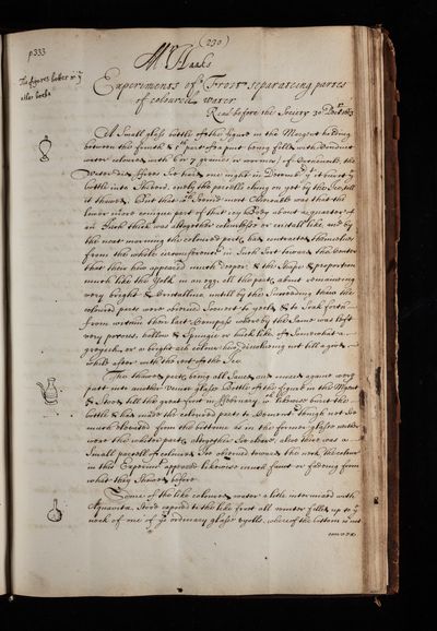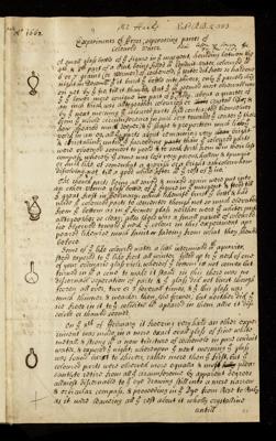 Paper, 'Experiments of frost seperateing partes of coloured water' by Theodore Haak