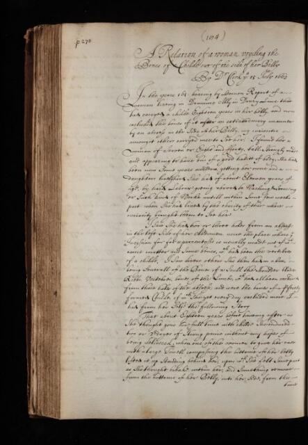 'A Relation of a woman voyding the Bones of a Childe out of the side of her Belly' by Dr Clerk