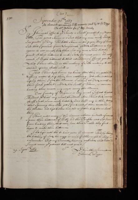 'An Account concerning Silk-wormes sent by Edward Diggs to Mr Palmer', 29 September 1663, RBO/2ii/59, The Royal Society Archives, London, https://makingscience.royalsociety.org/items/rbo_2ii_59/an-account-concerning-silk-wormes-sent-by-edward-diggs-to-mr-palmer, accessed on 06 February 2026