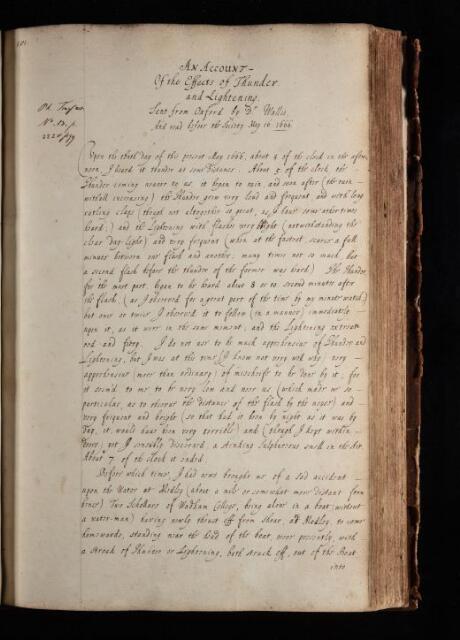 John Wallis, 'An Account Of the Effects of Thunder and Lightning Sent from Oxford' by John Wallis, 1666, RBO/3/33, The Royal Society Archives, London, https://makingscience.royalsociety.org/items/rbo_3_33/an-account-of-the-effects-of-thunder-and-lightning-sent-from-oxford-by-john-wallis, accessed on 08 February 2026