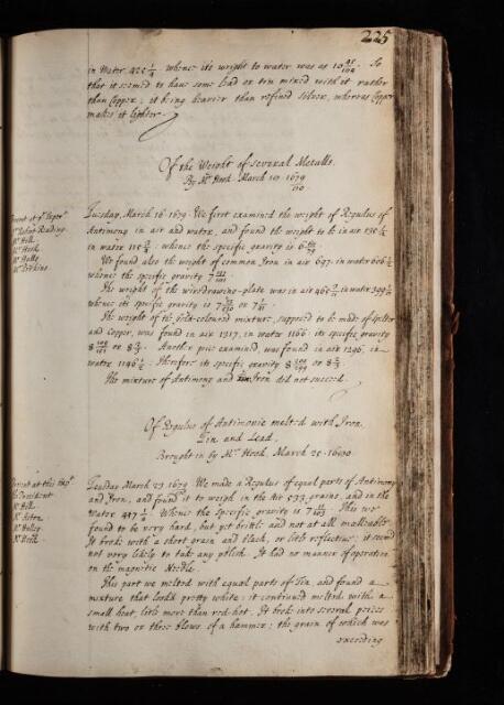 'Of the Weight of several Metalls' by Robert Hooke