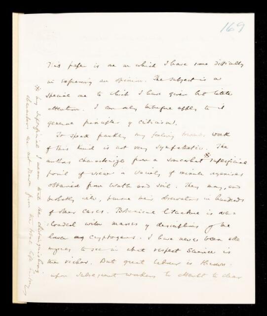 Referee's report by William Turner Thiselton-Dyer, on a paper 'On some new and typical micro-organisms obtained from water and soil' by Grace C Frankland and Percy Faraday Frankland