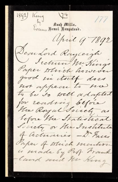 John Evans, Referee's report by John Evans, on a paper 'On questions relating to the condition as regards matrimony of the population of the United Kingdom' by George King, 09 April 1892, RR/11/177, The Royal Society Archives, London, https://makingscience.royalsociety.org/items/rr_11_177/referees-report-by-john-evans-on-a-paper-on-questions-relating-to-the-condition-as-regards-matrimony-of-the-population-of-the-united-kingdom-by-george-king, accessed on 06 December 2025