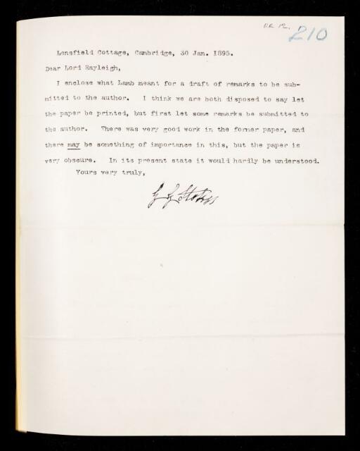 Creator: Horace Lamb Reference number: RR/12/208 -