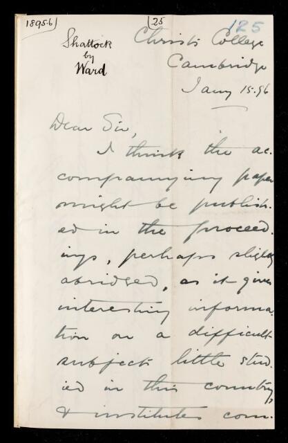 Harry Marshall Ward, Referee's report by Henry Marshall Ward, on a paper 'The healing of incisions in vegetable tissues' by Samuel George Shattock, 15 February 1896, RR/13/125, The Royal Society Archives, London, https://makingscience.royalsociety.org/items/rr_13_125/referees-report-by-henry-marshall-ward-on-a-paper-the-healing-of-incisions-in-vegetable-tissues-by-samuel-george-shattock, accessed on 12 December 2025