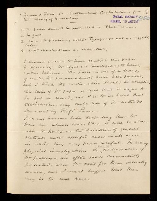 https://makingscience.royalsociety.org/items/rr_13_250/referees-report-by-george-howard-darwin-on-a-paper-mathematical-contributions-to-the-theory-of-evolution-iv-on-the-probable-errors-of-frequency-constants-and-on-the-influence-of-random-selection-on-variation-and-correlation-by-karl-pearson-and-louis-napoleon-george-filon