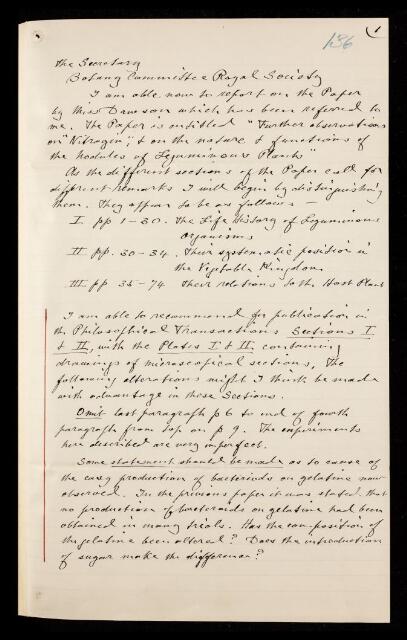 Referee's report by Isaac Bayley Balfour, on a paper 'Further observations on the nature and functions of the nodules of leguminous plants' by Maria Dawson