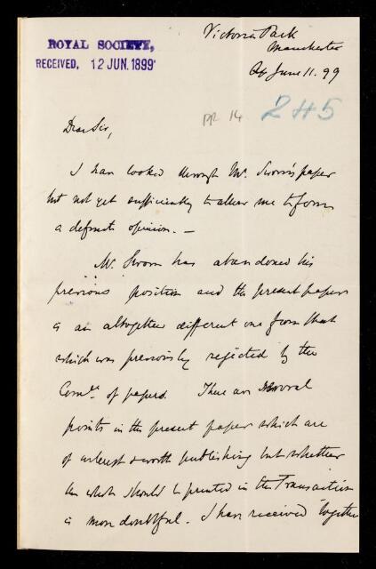 Arthur Schuster, Referee's report by Arthur Schuster, on a paper 'Researches in absolute mercurial thermometry' by Sidney A Sworn, 11 June 1899, RR/14/245, The Royal Society Archives, London, https://makingscience.royalsociety.org/items/rr_14_245/referees-report-by-arthur-schuster-on-a-paper-researches-in-absolute-mercurial-thermometry-by-sidney-a-sworn, accessed on 07 November 2025