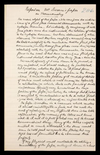 Referee's report by Percival Spencer Umfreville Pickering, on a paper 'Researches in absolute mercurial thermometry' by Sidney A Sworn, 17 July 1899, RR/14/246, The Royal Society Archives, London, https://makingscience.royalsociety.org/items/rr_14_246/referees-report-by-percival-spencer-umfreville-pickering-on-a-paper-researches-in-absolute-mercurial-thermometry-by-sidney-a-sworn, accessed on 23 January 2026