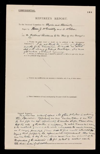 William Mitchinson Hicks, Referee's report by William Mitchinson Hicks, on a paper 'On the frictional resistances to the flow of air through a pipe' by John H Grindley and A H Gibson, June 1907, RR/17/164, The Royal Society Archives, London, https://makingscience.royalsociety.org/items/rr_17_164/referees-report-by-william-mitchinson-hicks-on-a-paper-on-the-frictional-resistances-to-the-flow-of-air-through-a-pipe-by-john-h-grindley-and-a-h-gibson, accessed on 23 January 2026