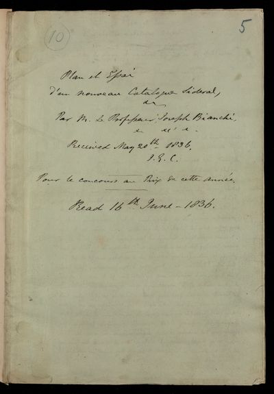 William Henry Smyth, Referee's report by William Henry Smyth, on a paper 'Planet Esaid’un nouveau catalogue sidéral, avec une réprésentation graphique, et une loi de simple et régulière distribution des étoiles autour du Pole, qui pourra fournir plusieurs avantages à I’ Astronomie pratique' by Joseph Bianchi, 16 October 1836, RR/1/23, The Royal Society Archives, London, https://makingscience.royalsociety.org/items/rr_1_23/referees-report-by-william-henry-smyth-on-a-paper-planet-esaidun-nouveau-catalogue-sidéral-avec-une-réprésentation-graphique-et-une-loi-de-simple-et-régulière-distribution-des-étoiles-autour-du-pole-qui-pourra-fournir-plusieurs-avantages-à-i-astronomie-pratique-by-joseph-bianchi, accessed on 11 April 2026