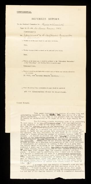 Referee's report by Robert Abbott Hadfield, on the Bakerian Lecture 'Experiments on the artificial production of diamond' by Charles Algernon Parsons