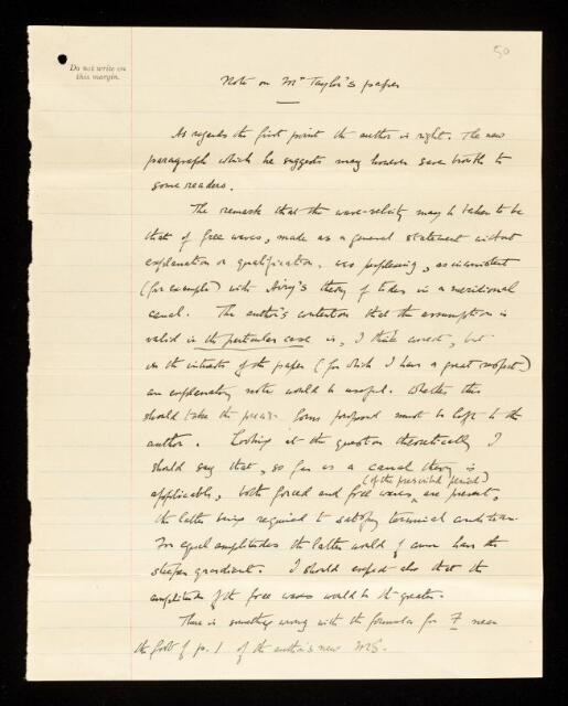 Horace Lamb, Referee's report by Horace Lamb, on a paper 'Tidal friction in the Irish Sea' by Geoffrey Ingram Taylor, January 1919, RR/25/50, The Royal Society Archives, London, https://makingscience.royalsociety.org/items/rr_25_50/referees-report-by-horace-lamb-on-a-paper-tidal-friction-in-the-irish-sea-by-geoffrey-ingram-taylor, accessed on 12 February 2026