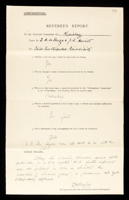 William Maddock Bayliss, Referee's report by William Maddock Bayliss, on a paper 'Idio-ventricular periodicity' by D H De Souza and James Arthur Hewitt, 13 October 1921, RR/26/136, The Royal Society Archives, London, https://makingscience.royalsociety.org/items/rr_26_136/referees-report-by-william-maddock-bayliss-on-a-paper-idio-ventricular-periodicity-by-d-h-de-souza-and-james-arthur-hewitt, accessed on 15 December 2025