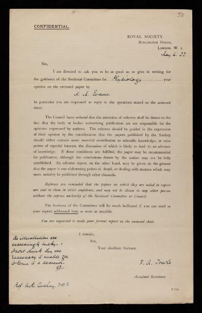 Arthur Robertson Cushny, Referee's report by Arthur Robertson Cushny, on a paper 'The defensive spines of fishes, living and fossil, and the glandular structure in connection therewith, with observations on the nature of fish venoms' by H Muir Evans, May 1922, RR/27/50, The Royal Society Archives, London, https://makingscience.royalsociety.org/items/rr_27_50/referees-report-by-arthur-robertson-cushny-on-a-paper-the-defensive-spines-of-fishes-living-and-fossil-and-the-glandular-structure-in-connection-therewith-with-observations-on-the-nature-of-fish-venoms-by-h-muir-evans, accessed on 12 December 2025