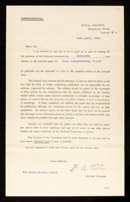 William Jackson Pope, Referee's report by William Jackson Pope, on a paper 'The origin of osmotic effects. IV.—Hydronodynamic change in aqueous solutions' by Henry Edward Armstrong, 30 March 1923, RR/28/56, The Royal Society Archives, London, https://makingscience.royalsociety.org/items/rr_28_56/referees-report-by-william-jackson-pope-on-a-paper-the-origin-of-osmotic-effects-ivhydronodynamic-change-in-aqueous-solutions-by-henry-edward-armstrong, accessed on 12 January 2026