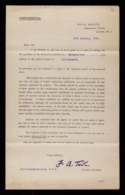 Recommended for publication in Philosophical Transactions. The paper will be 'very expensive' to print. He does not know what can be cut out.