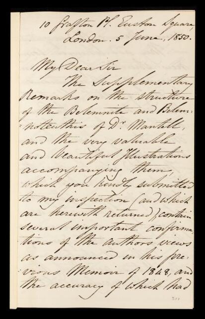 Robert Edmond Grant, Referee's report by Robert Edmond Grant, on a paper 'Supplementary observations on the structure of the Belemnite and Belemnoteuthis' by Gideon Algernon Mantell, 05 June 1850, RR/2/146, The Royal Society Archives, London, https://makingscience.royalsociety.org/items/rr_2_146/referees-report-by-robert-edmond-grant-on-a-paper-supplementary-observations-on-the-structure-of-the-belemnite-and-belemnoteuthis-by-gideon-algernon-mantell, accessed on 14 November 2025