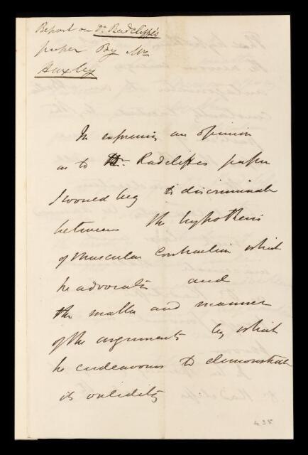 Thomas Henry Huxley, Referee's report by Thomas Henry Huxley, on a paper 'The physical theory of muscular contraction' by Charles Bland Radcliffe, 1853, RR/2/195, The Royal Society Archives, London, https://makingscience.royalsociety.org/items/rr_2_195/referees-report-by-thomas-henry-huxley-on-a-paper-the-physical-theory-of-muscular-contraction-by-charles-bland-radcliffe, accessed on 12 February 2026