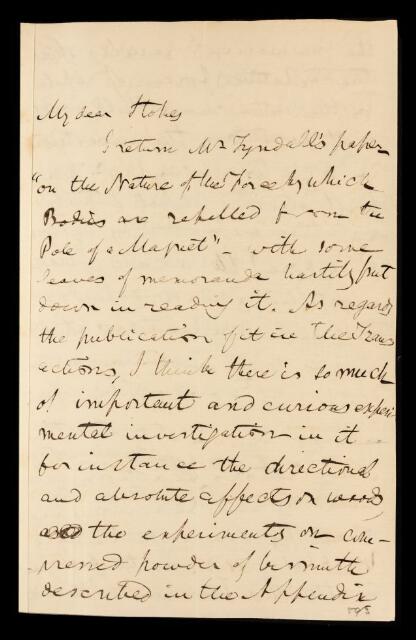 Paper, 'On the nature of the force by which bodies are repelled from the poles of a magnet; to which is prefixed an account of some experiments on molecular influences' by John Tyndall