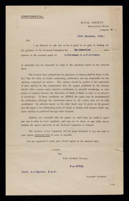Sydney Chapman, Referee's report by Sydney Chapman, on a paper 'The principal constituent of the tides of the North Sea' by Joseph Proudman and Arthur Thomas Doodson, February 1924, RR/31/39, The Royal Society Archives, London, https://makingscience.royalsociety.org/items/rr_31_39/referees-report-by-sydney-chapman-on-a-paper-the-principal-constituent-of-the-tides-of-the-north-sea-by-joseph-proudman-and-arthur-thomas-doodson, accessed on 08 March 2026
