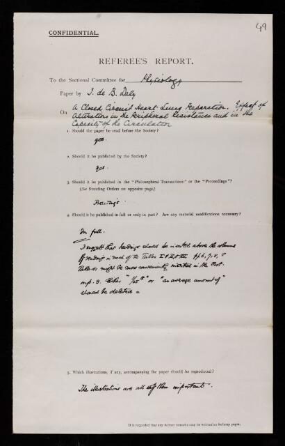 Hugh Kerr Anderson, Referee's report by Hugh Kerr Anderson, on a paper 'A closed-circuit heart-lung preparation.—Effect of alterations in the peripheral resistance and the capacity of the circulation' by Ivan de Burgh Daly, January 1926, RR/33/49, The Royal Society Archives, London, https://makingscience.royalsociety.org/items/rr_33_49/referees-report-by-hugh-kerr-anderson-on-a-paper-a-closed-circuit-heart-lung-preparationeffect-of-alterations-in-the-peripheral-resistance-and-the-capacity-of-the-circulation-by-ivan-de-burgh-daly, accessed on 12 December 2025