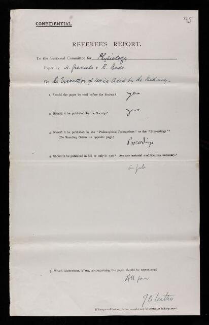 John Beresford Leathes, Referee's report by John Beresford Leathes, on a paper 'The excretion of uric acid by the kidney' by Hans Gremels and Richard Bodo, June 1926, RR/33/95, The Royal Society Archives, London, https://makingscience.royalsociety.org/items/rr_33_95/referees-report-by-john-beresford-leathes-on-a-paper-the-excretion-of-uric-acid-by-the-kidney-by-hans-gremels-and-richard-bodo, accessed on 16 November 2025