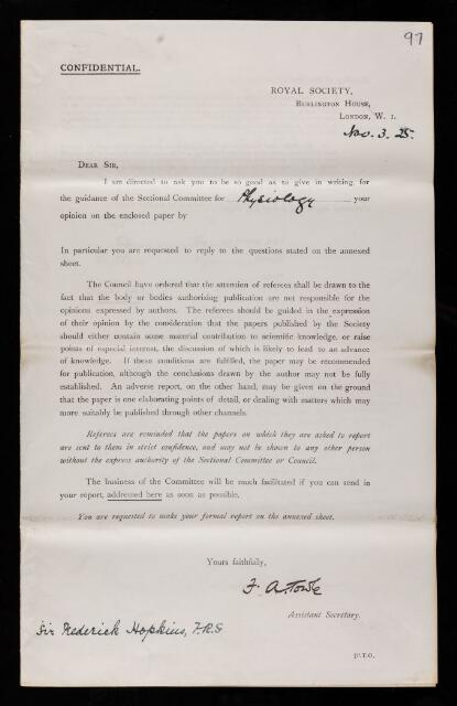 Frederick Gowland Hopkins, Referee's report by Frederick Gowland Hopkins, on a paper 'The metabolism of the diabetic individual during and after muscular exercise' by K S Hetzel and C N H Long, November 1925, RR/33/97, The Royal Society Archives, London, https://makingscience.royalsociety.org/items/rr_33_97/referees-report-by-frederick-gowland-hopkins-on-a-paper-the-metabolism-of-the-diabetic-individual-during-and-after-muscular-exercise-by-k-s-hetzel-and-c-n-h-long, accessed on 12 November 2025