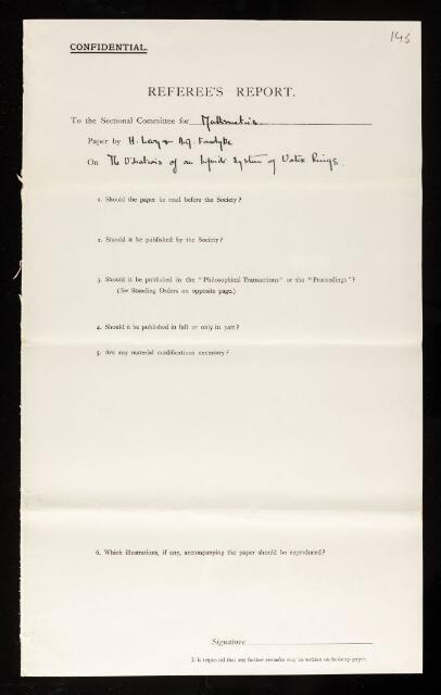 Richard Tetley Glazebrook, Referee's report by Richard Tetley Glazebrook, on a paper 'The vibrations of an infinite system of vortex rings' by H Levy and A G Forsdyke, June 1927, RR/35/143, The Royal Society Archives, London, https://makingscience.royalsociety.org/items/rr_35_143/referees-report-by-richard-tetley-glazebrook-on-a-paper-the-vibrations-of-an-infinite-system-of-vortex-rings-by-h-levy-and-a-g-forsdyke, accessed on 06 February 2026