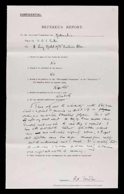Ralph Howard Fowler, Referee's report by Ralph Howard Fowler, on a paper 'A ring model of the sodium atom' by W G L Sutton, May 1927, RR/36/83, The Royal Society Archives, London, https://makingscience.royalsociety.org/items/rr_36_83/referees-report-by-ralph-howard-fowler-on-a-paper-a-ring-model-of-the-sodium-atom-by-w-g-l-sutton, accessed on 08 November 2025