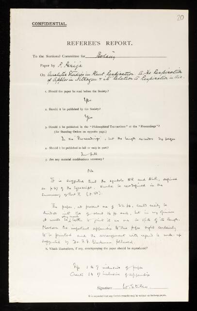 Walter Stiles, Referee's report by Walter Stiles, on a paper 'Analytic studies in plant respiration. II.—The respiration of apples in nitrogen and its relation to respiration in air' by P Parija, July 1928, RR/37/20, The Royal Society Archives, London, https://makingscience.royalsociety.org/items/rr_37_20/referees-report-by-walter-stiles-on-a-paper-analytic-studies-in-plant-respiration-iithe-respiration-of-apples-in-nitrogen-and-its-relation-to-respiration-in-air-by-p-parija, accessed on 16 January 2026
