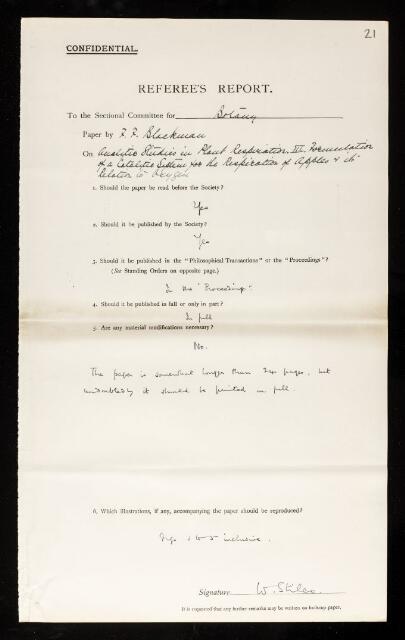 Walter Stiles, Referee's report by Walter Stiles, on a paper 'Analytic studies in plant respiration. III.—Formulation of a catalytic system for the respiration of apples and its relation to oxygen' by Frederick Frost Blackman, July 1928, RR/37/21, The Royal Society Archives, London, https://makingscience.royalsociety.org/items/rr_37_21/referees-report-by-walter-stiles-on-a-paper-analytic-studies-in-plant-respiration-iiiformulation-of-a-catalytic-system-for-the-respiration-of-apples-and-its-relation-to-oxygen-by-frederick-frost-blackman, accessed on 13 January 2026