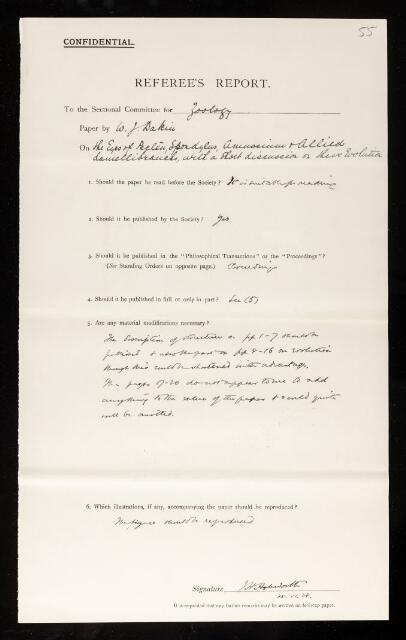 James Hartley Ashworth, Referee's report by James Hartley Ashworth, on a paper 'The anatomy and phylogeny of spondylus, with a particular reference to the Lamellibranch nervous system' by William John Dakin, 25 November 1928, RR/37/55, The Royal Society Archives, London, https://makingscience.royalsociety.org/items/rr_37_55/referees-report-by-james-hartley-ashworth-on-a-paper-the-anatomy-and-phylogeny-of-spondylus-with-a-particular-reference-to-the-lamellibranch-nervous-system-by-william-john-dakin, accessed on 14 March 2026