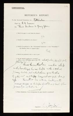 Geoffrey Ingram Taylor, Referee's report by Geoffrey Ingram Taylor, on a paper 'Fluid resistance to moving spheres' by R G Lunnon, February 1928, RR/38/113, The Royal Society Archives, London, https://makingscience.royalsociety.org/items/rr_38_113/referees-report-by-geoffrey-ingram-taylor-on-a-paper-fluid-resistance-to-moving-spheres-by-r-g-lunnon, accessed on 14 November 2025