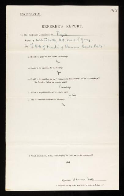 William Lawrence Bragg, Referee's report by William Lawrence Bragg, on a paper 'The mode of formation of Neumann bands. Part II.–The evidence that the bands are twins' by Samuel Walter Johnson Smith, A A Dee and J Young, October 1928, RR/38/143, The Royal Society Archives, London, https://makingscience.royalsociety.org/items/rr_38_143/referees-report-by-william-lawrence-bragg-on-a-paper-the-mode-of-formation-of-neumann-bands-part-iithe-evidence-that-the-bands-are-twins-by-samuel-walter-johnson-smith-a-a-dee-and-j-young, accessed on 13 November 2025