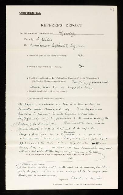 Charles James Martin, Referee's report by Charles James Martin, on a paper 'Cytochrome and respiratory enzymes' by David Keilin, December 1928, RR/38/91, The Royal Society Archives, London, https://makingscience.royalsociety.org/items/rr_38_91/referees-report-by-charles-james-martin-on-a-paper-cytochrome-and-respiratory-enzymes-by-david-keilin, accessed on 10 March 2026
