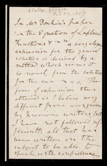 Paper, 'On the equation of Laplace's functions, etc.' by W F [William Fishburn] Donkin