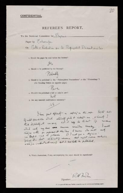 Ralph Howard Fowler, Referee's report by Ralph Howard Fowler, on a paper 'Matter and radiation as the propogated discontinuities' by [Ali Moustafa] Mosharrafa, February 1930, RR/40/20, The Royal Society Archives, London, https://makingscience.royalsociety.org/items/rr_40_20/referees-report-by-ralph-howard-fowler-on-a-paper-matter-and-radiation-as-the-propogated-discontinuities-by-ali-moustafa-mosharrafa, accessed on 14 January 2026