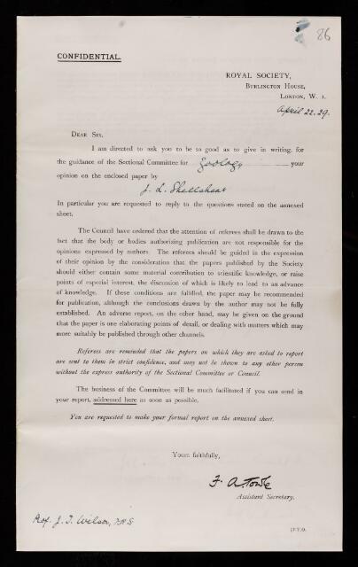 James Thomas Wilson, Referee's report by James Thomas Wilson, on a paper 'A study of the arteries of the brain of the spiny anteater (Echidna aculeata), to illustrate the principles of arterial distribution' by Joseph L. Shellshear, May 1929, RR/40/86, The Royal Society Archives, London, https://makingscience.royalsociety.org/items/rr_40_86/referees-report-by-james-thomas-wilson-on-a-paper-a-study-of-the-arteries-of-the-brain-of-the-spiny-anteater-echidna-aculeata-to-illustrate-the-principles-of-arterial-distribution-by-joseph-l-shellshear, accessed on 13 March 2026