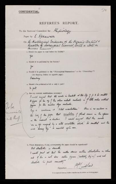 Referees' reports on scientific papers submitted to the Royal Society for publication