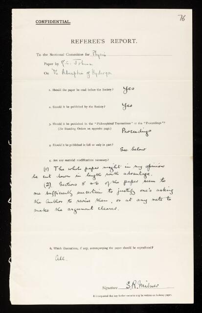 Samuel Roslington Milner, Referee's report by Samuel Roslington Milner, on a paper 'The adsorption of hydrogen. Part II.—Maintenance of a monomolecular layer and liberation of recombined atoms with emission of energy' by M C Johnson, March 1931, RR/43/76, The Royal Society Archives, London, https://makingscience.royalsociety.org/items/rr_43_76/referees-report-by-samuel-roslington-milner-on-a-paper-the-adsorption-of-hydrogen-part-iimaintenance-of-a-monomolecular-layer-and-liberation-of-recombined-atoms-with-emission-of-energy-by-m-c-johnson, accessed on 08 February 2026