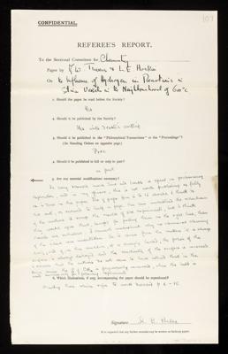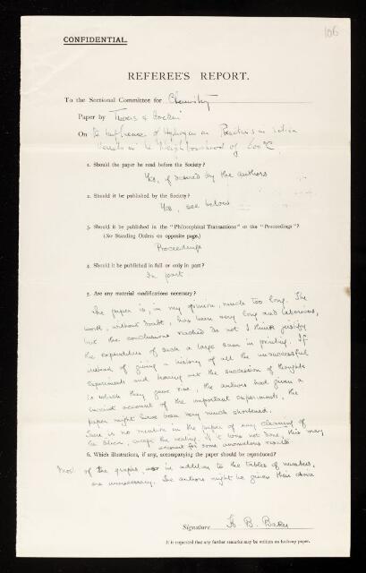 Herbert Brereton Baker, Referee's report by Herbert Brereton Baker, on a paper 'On the influence of hydrogen on the pyrolysis of ethane and ethylene near 600°.—Part I' by Morris William Travers and L E Hockin, June 1931, RR/44/106, The Royal Society Archives, London, https://makingscience.royalsociety.org/items/rr_44_106/referees-report-by-herbert-brereton-baker-on-a-paper-on-the-influence-of-hydrogen-on-the-pyrolysis-of-ethane-and-ethylene-near-600part-i-by-morris-william-travers-and-l-e-hockin, accessed on 14 November 2025